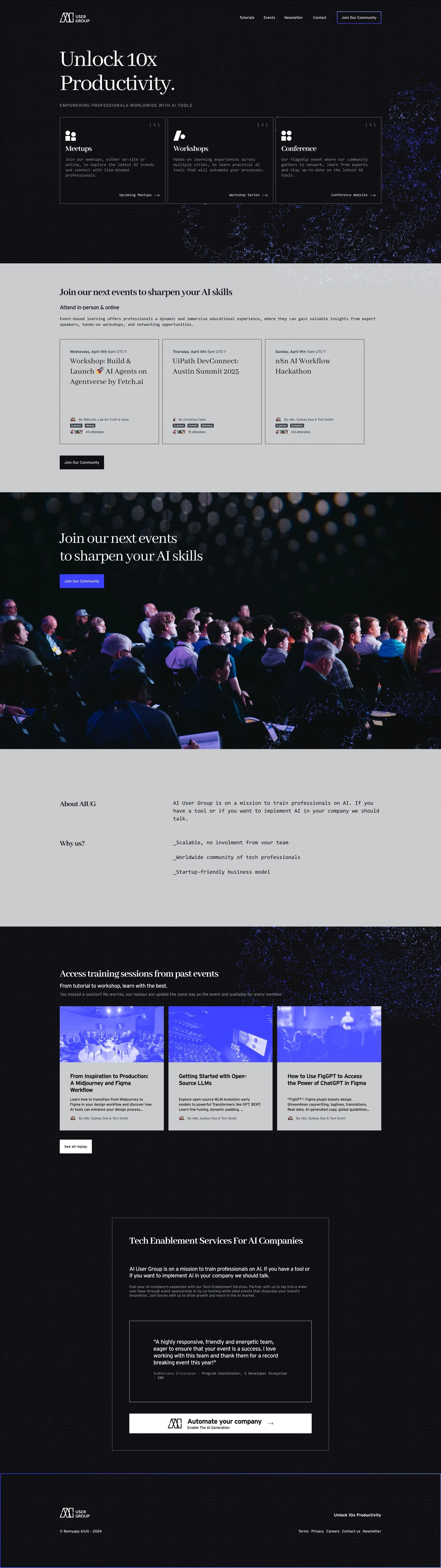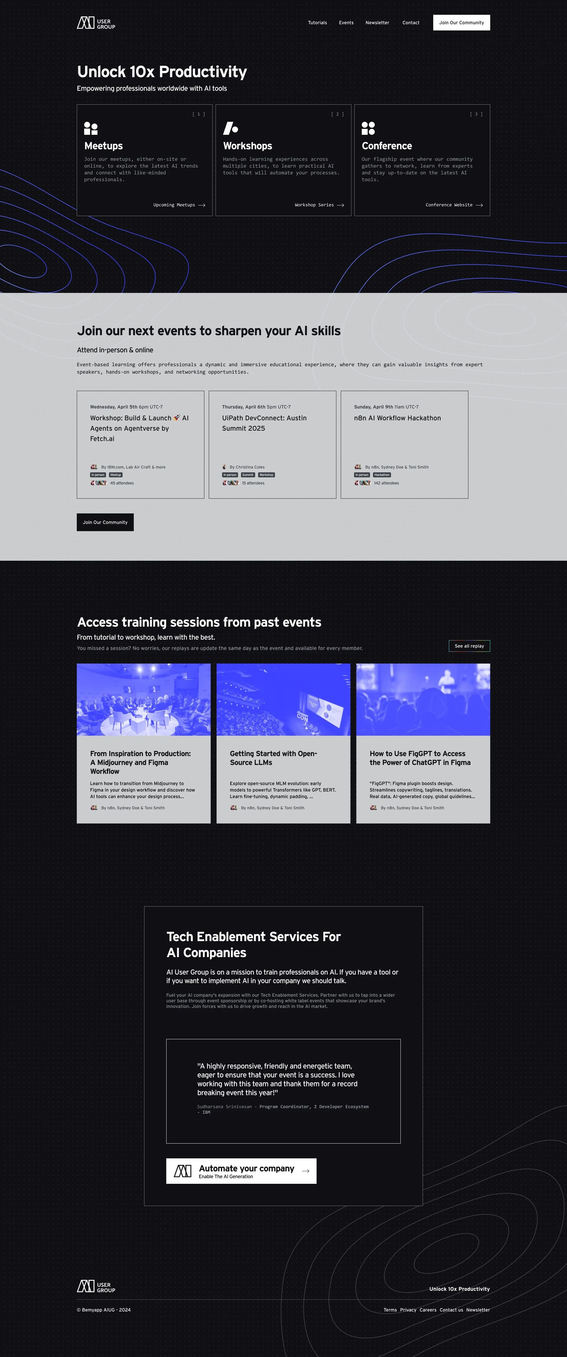 AI User Group empowers professionals worldwide with AI tools and knowledge for exponential career growth. The platform offers a dynamic and immersive educational experience, where they can gain valuable insights from expert speakers, hands-on workshops, and networking opportunities.